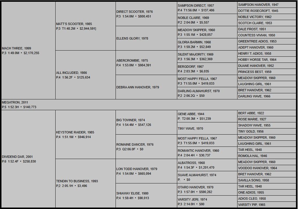 • River Bend Raider p,1:51.2 ($116,244) - Dam of Driven By Destiny (M) p,1:55.1f ($87,057), producer of Fulfillmydestiny p,2,1:49.2-’21 ($196,190), fastest 2YO pacing gelding in North America (2021).